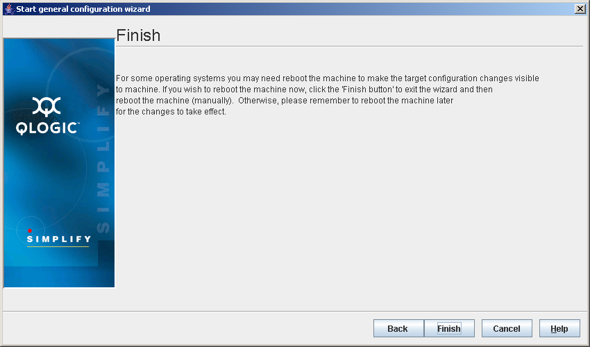 - Click Finish to exit the wizard. The changes become effective when the machine is rebooted. You can reboot the machine now or later.
